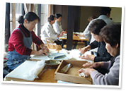 地元で採れた素材を使ったいなか料理で心を込めて、おもてなしいたします。村で収穫した米、野菜はもちろん、好評の地鶏のすき焼きのほか、春は山菜、夏は鮎、秋はきのこ、冬はぼたん、四季おりおりの味と風景でおくつろぎください。